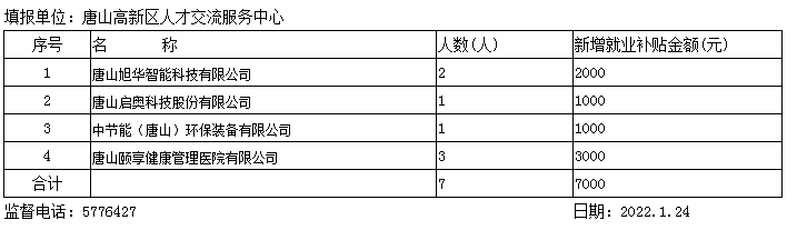 經審核唐山旭華智能科技有限公司、唐山啟奧科技股份有限公司、中節能(唐山)環保裝備有限公司、唐山頤享健康管理醫院有限公司申報的就業補貼符合政策要求,該補貼資金公示到期后發放至公司對公賬戶。