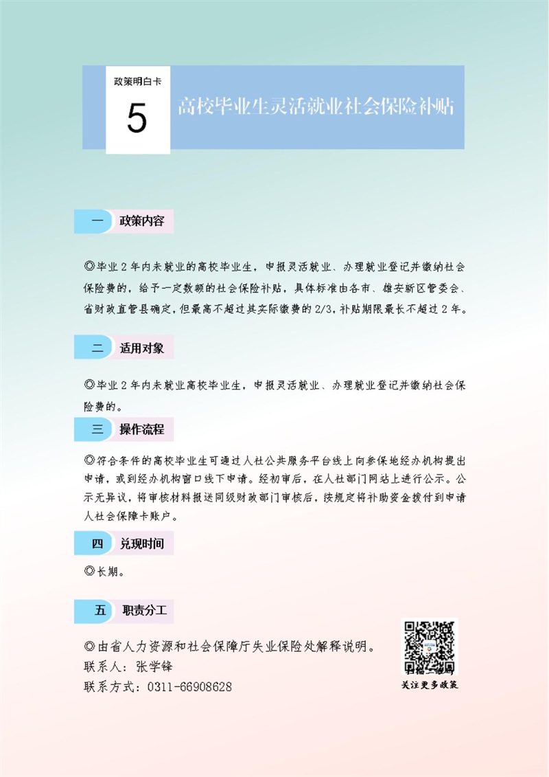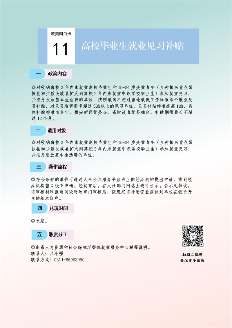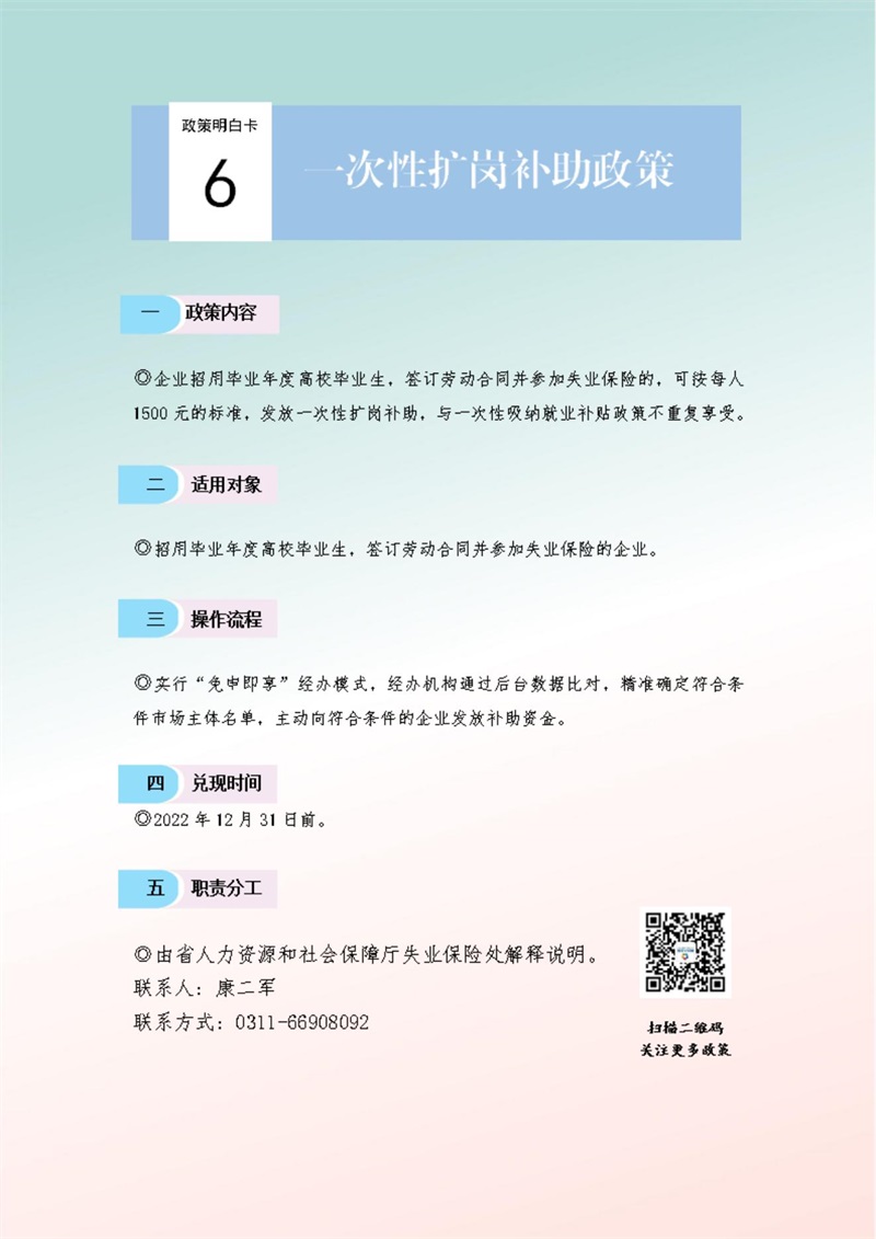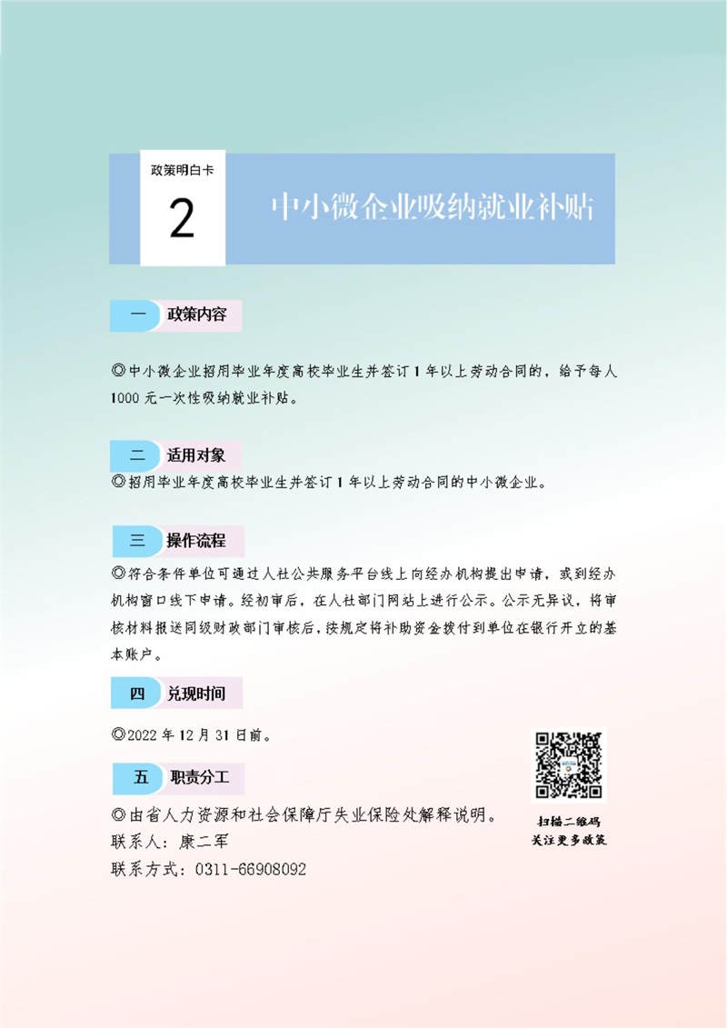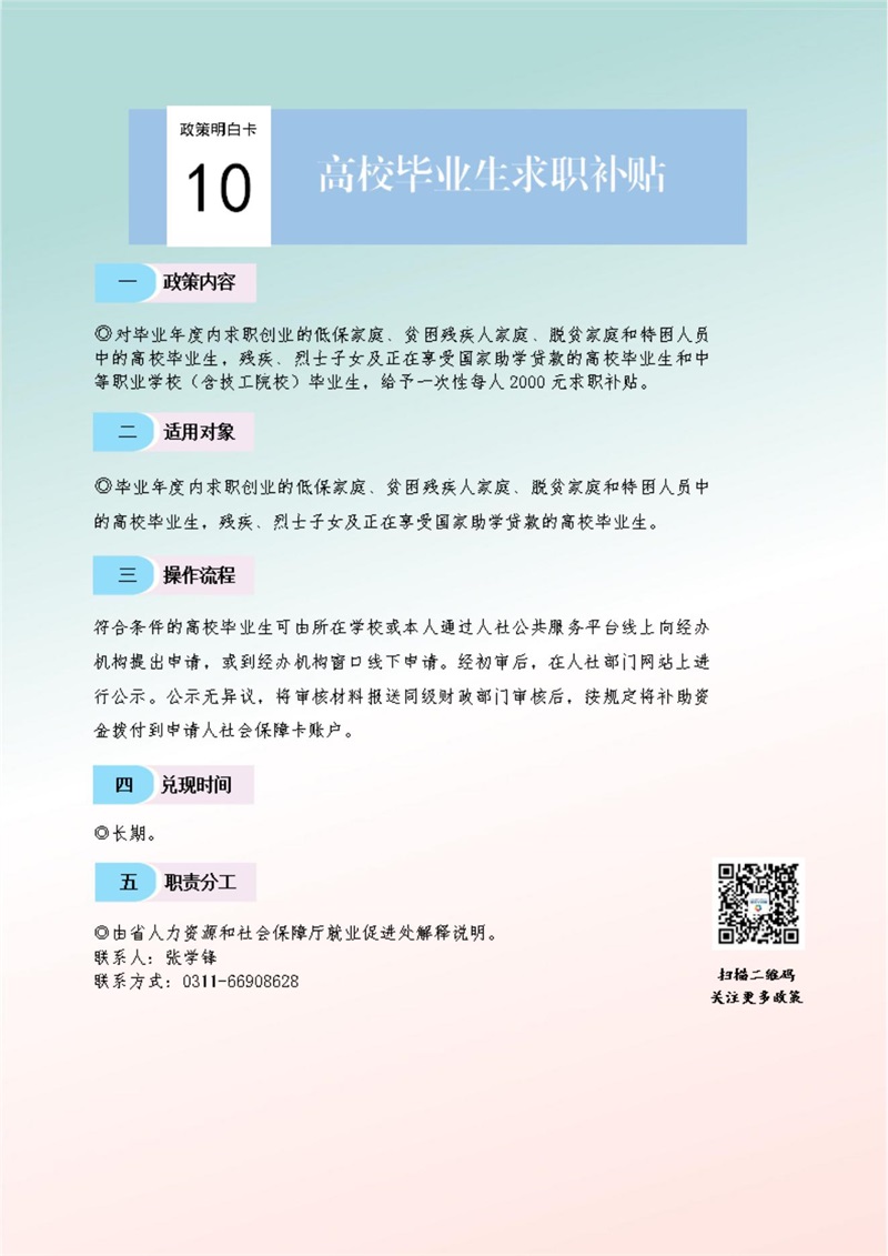 關于進一步促進高校畢業生等青年就業創業的十九條政策措施明白卡