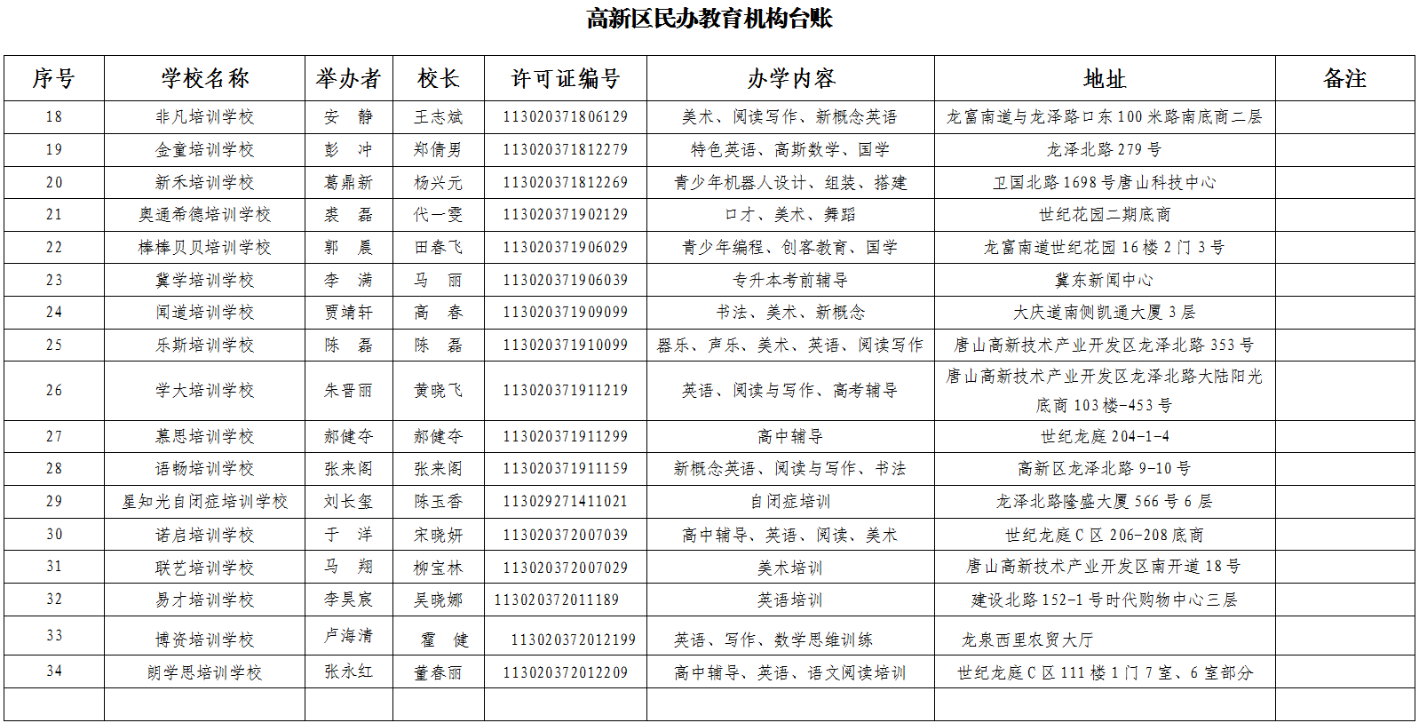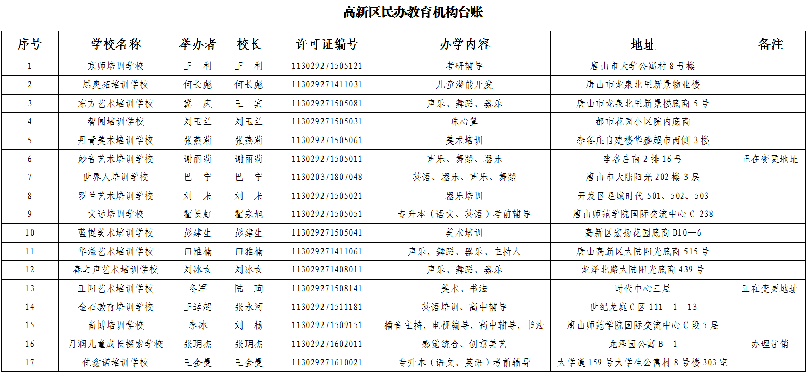 現將行政部門審批,具有合法辦學資質的民辦非學歷教育機構公示給家長朋友。
