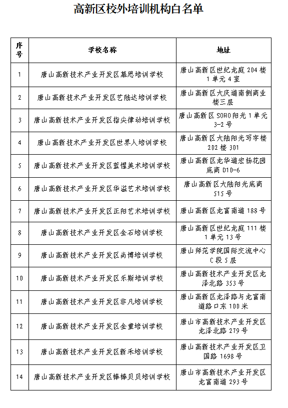 附:高新區(qū)校外培訓機構白名單