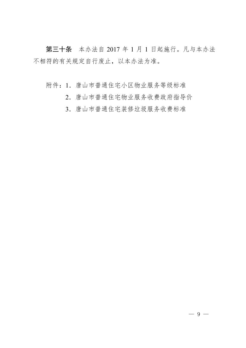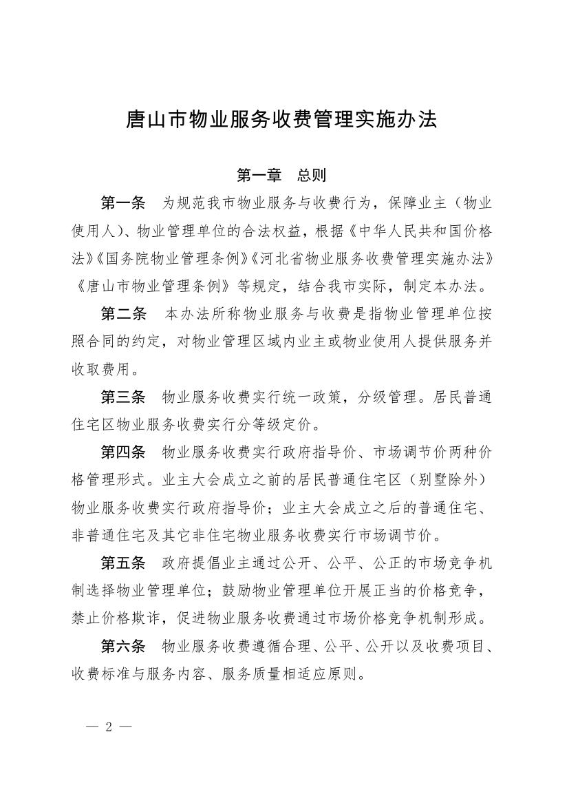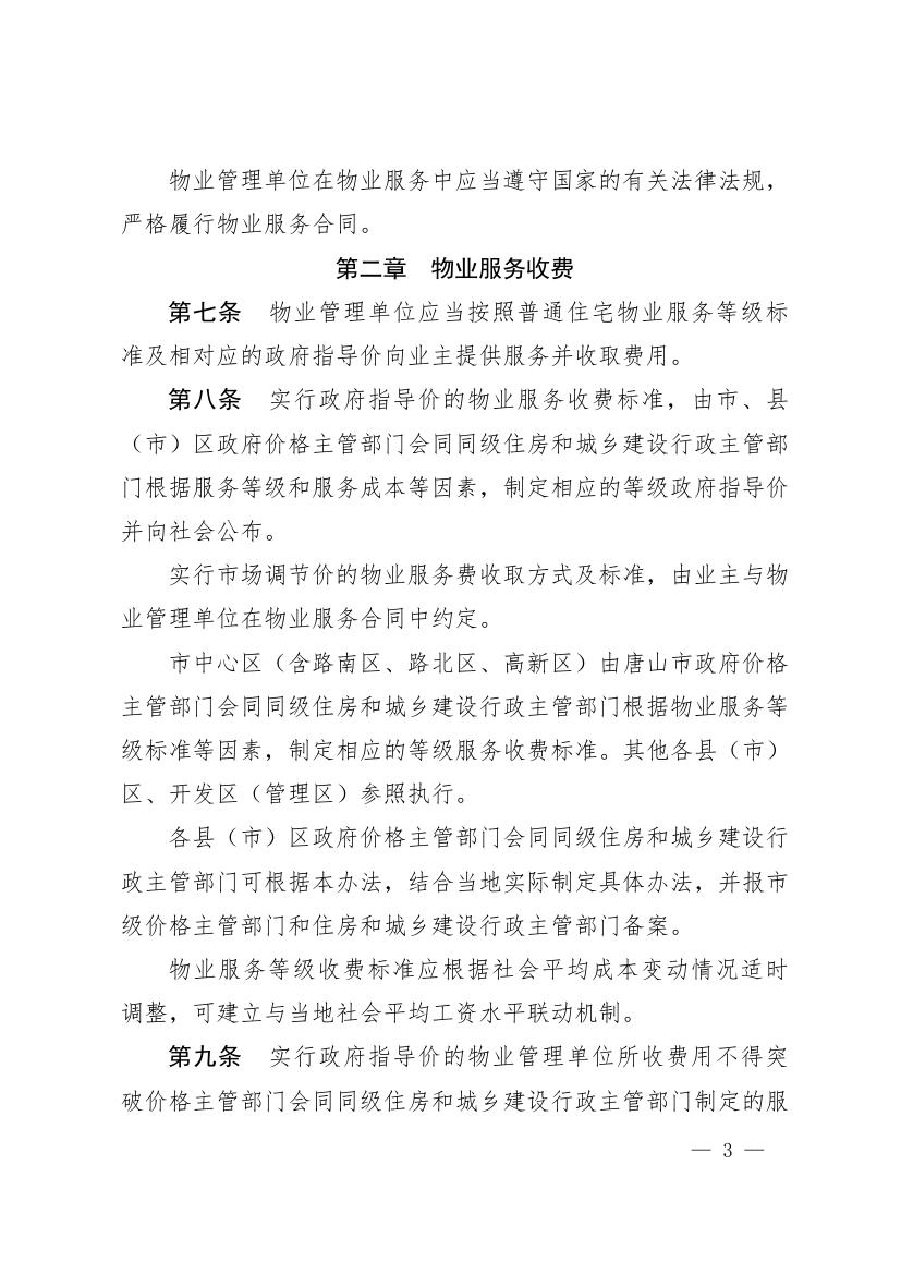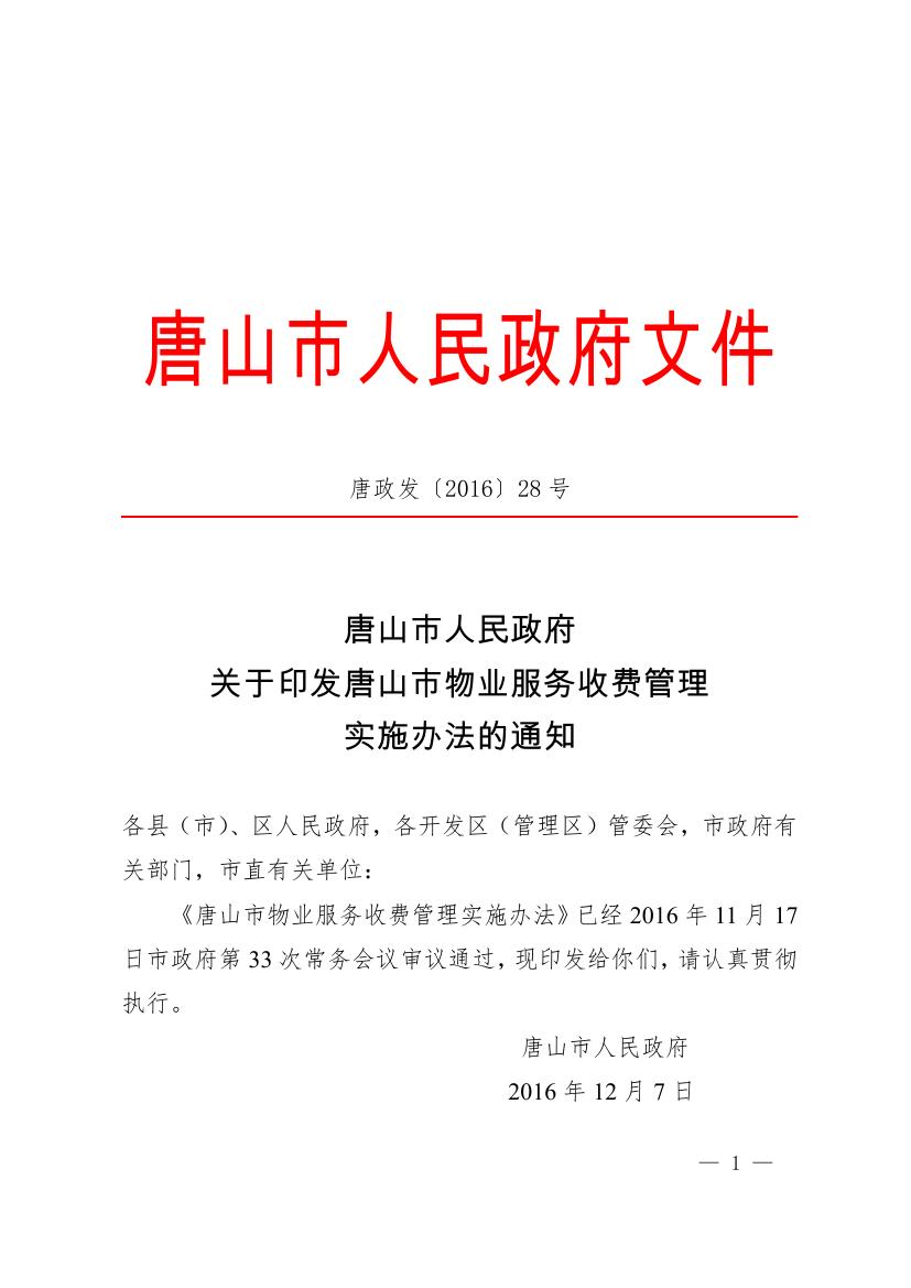唐山市人民政府 關于印發唐山市物業服務收費管理 實施辦法的通知