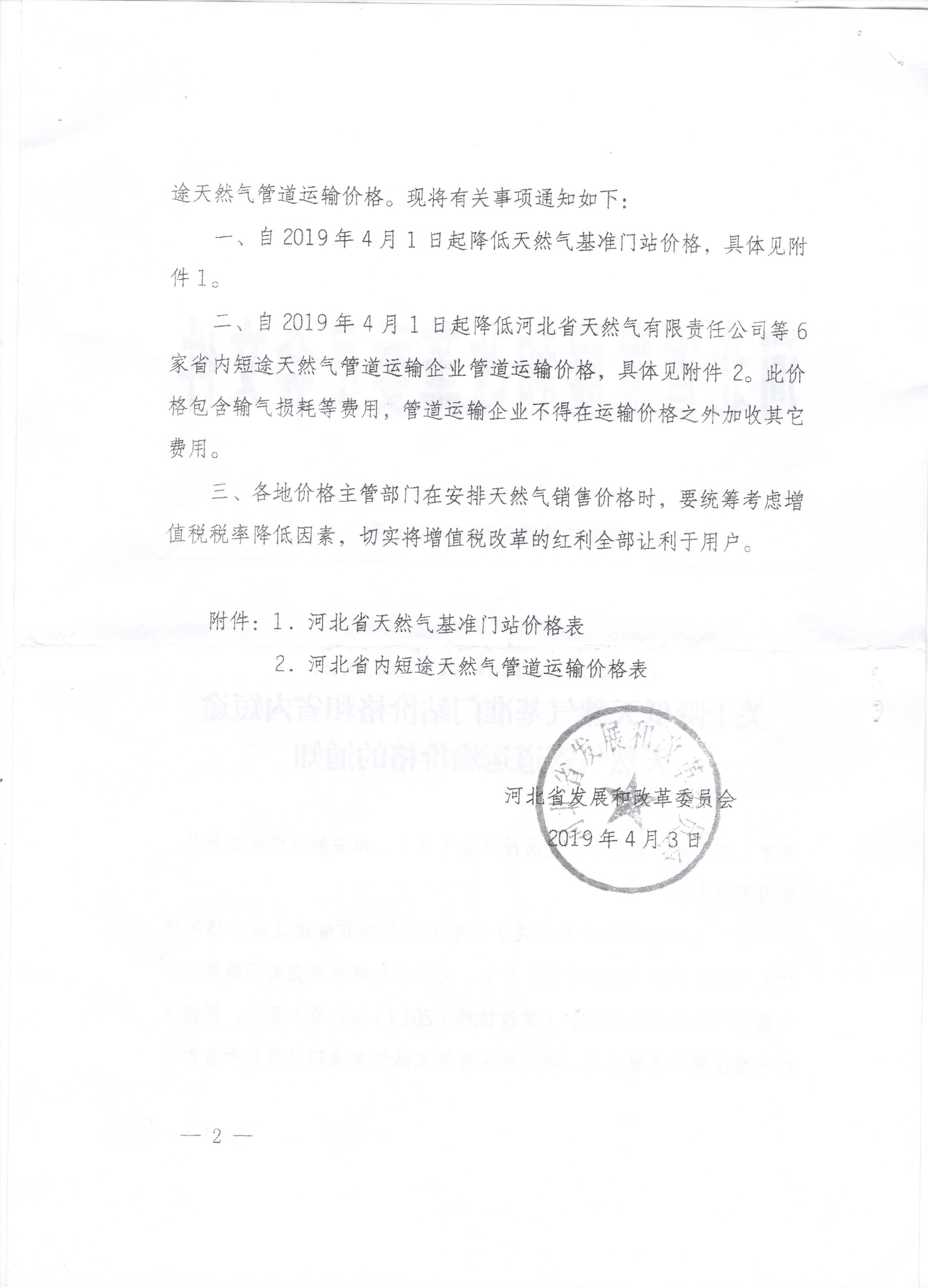 關于降低天然氣基準門站價格和省內短途天然氣管道運輸價格的通知