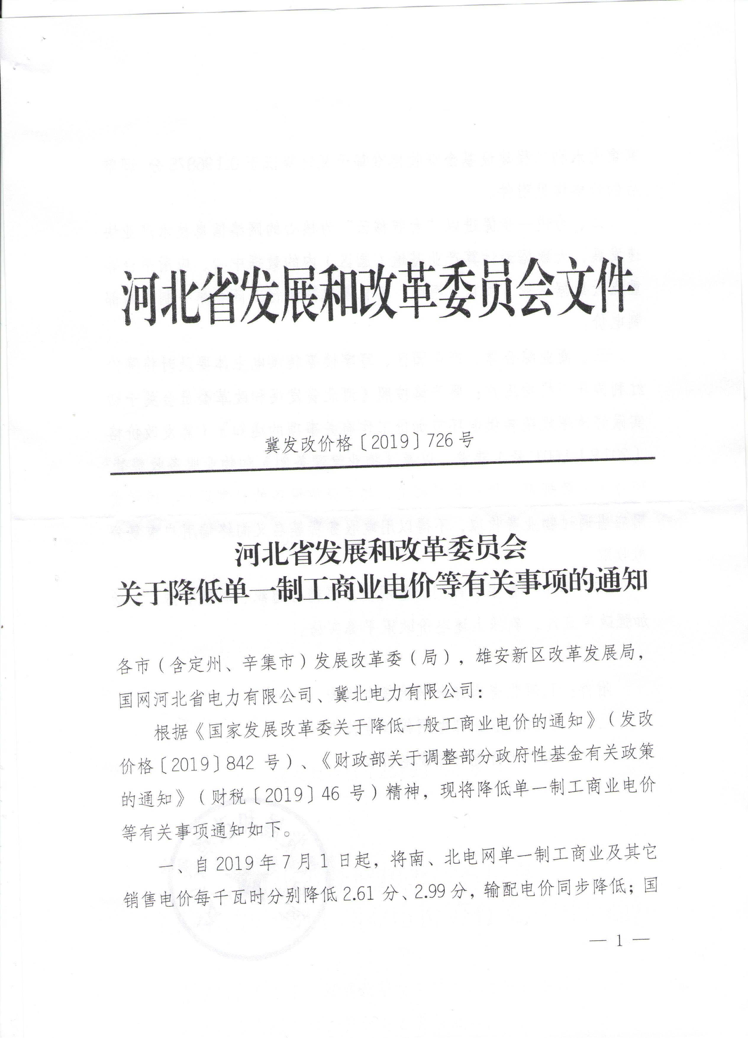 關(guān)于降低單一制工商業(yè)電價(jià)等有關(guān)事項(xiàng)的通知