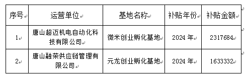 按照《唐山市人民政府辦公室關(guān)于印發(fā)唐山市創(chuàng)業(yè)孵化基地管理辦法的通知》(唐政辦發(fā)〔2022〕109號(hào))規(guī)定,經(jīng)對(duì)高新區(qū)2家創(chuàng)業(yè)孵化基地房租物業(yè)水電費(fèi)申報(bào)材料進(jìn)行審核,同時(shí)根據(jù)唐山金恒房地產(chǎn)評(píng)估有限公司對(duì)該基地地價(jià)、設(shè)備投入、租金等方面的綜合評(píng)估,共需從就業(yè)扶持資金中支出¥3951016元,現(xiàn)將補(bǔ)貼情況進(jìn)行公示,公示期為3天,公示期內(nèi)如有異議,請(qǐng)向唐山高新區(qū)人力資源和社會(huì)保障局人才交流中心反映。