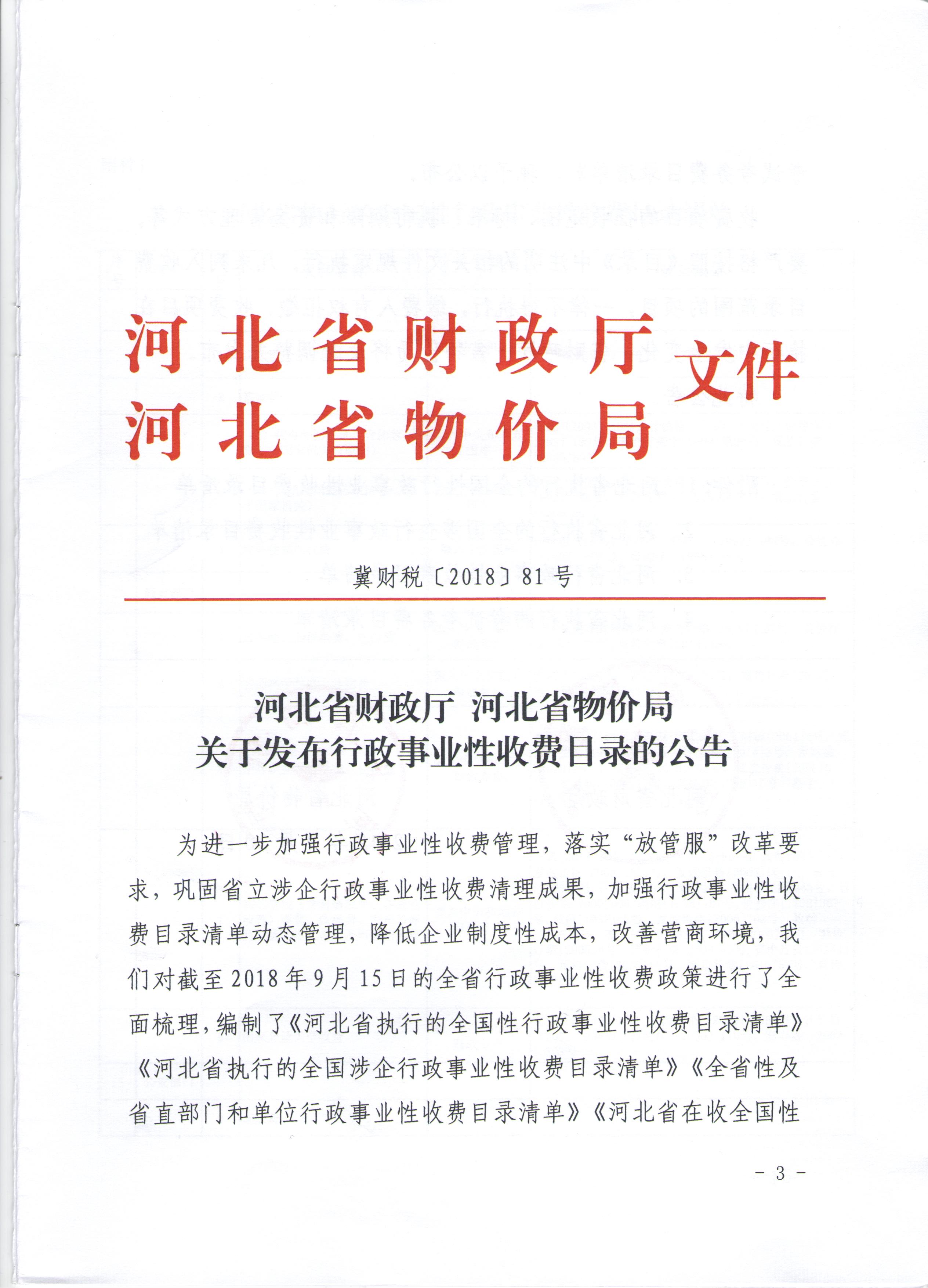 高新區發改局關于轉發《河北省財政廳、河北省物價局關于發布行政事業性收費目錄的公告》的通知