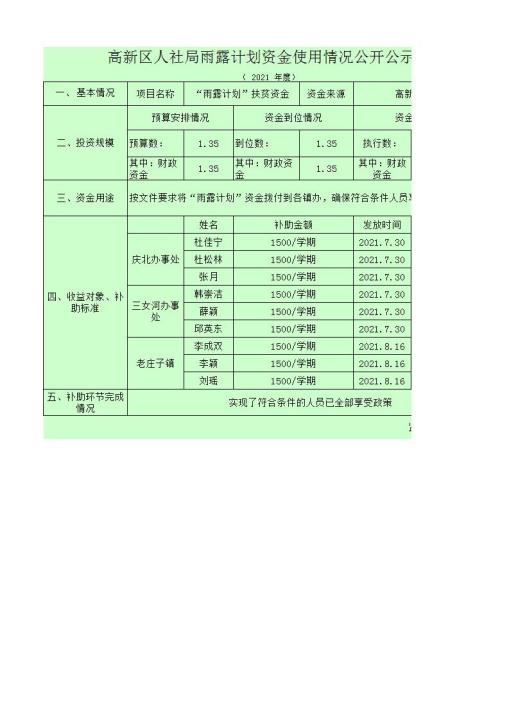 2021年春季雨露計劃使用情況公開公示